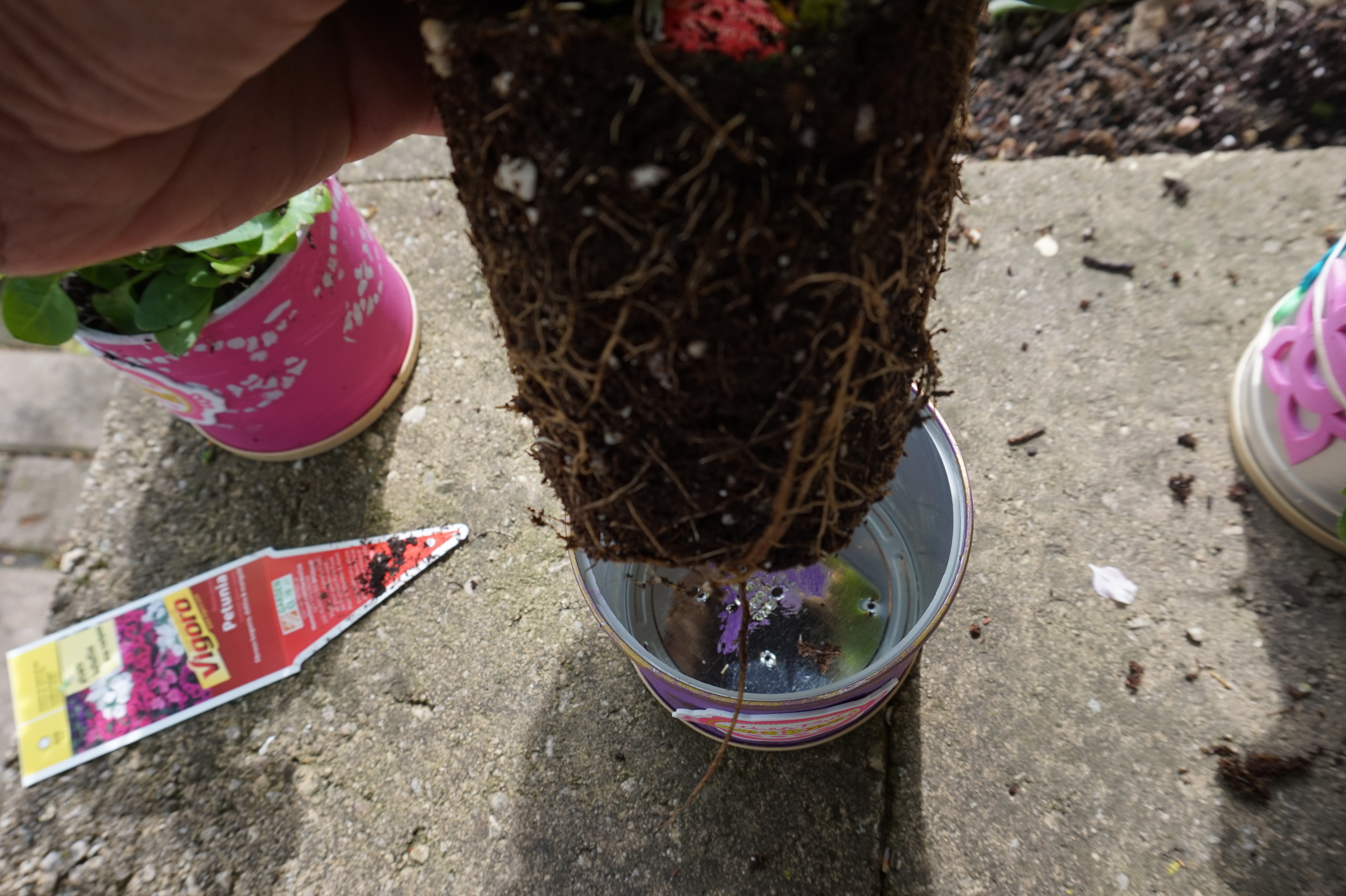Oh, I pierced holes in the tins and covered with the top of the formula can for easy watering.