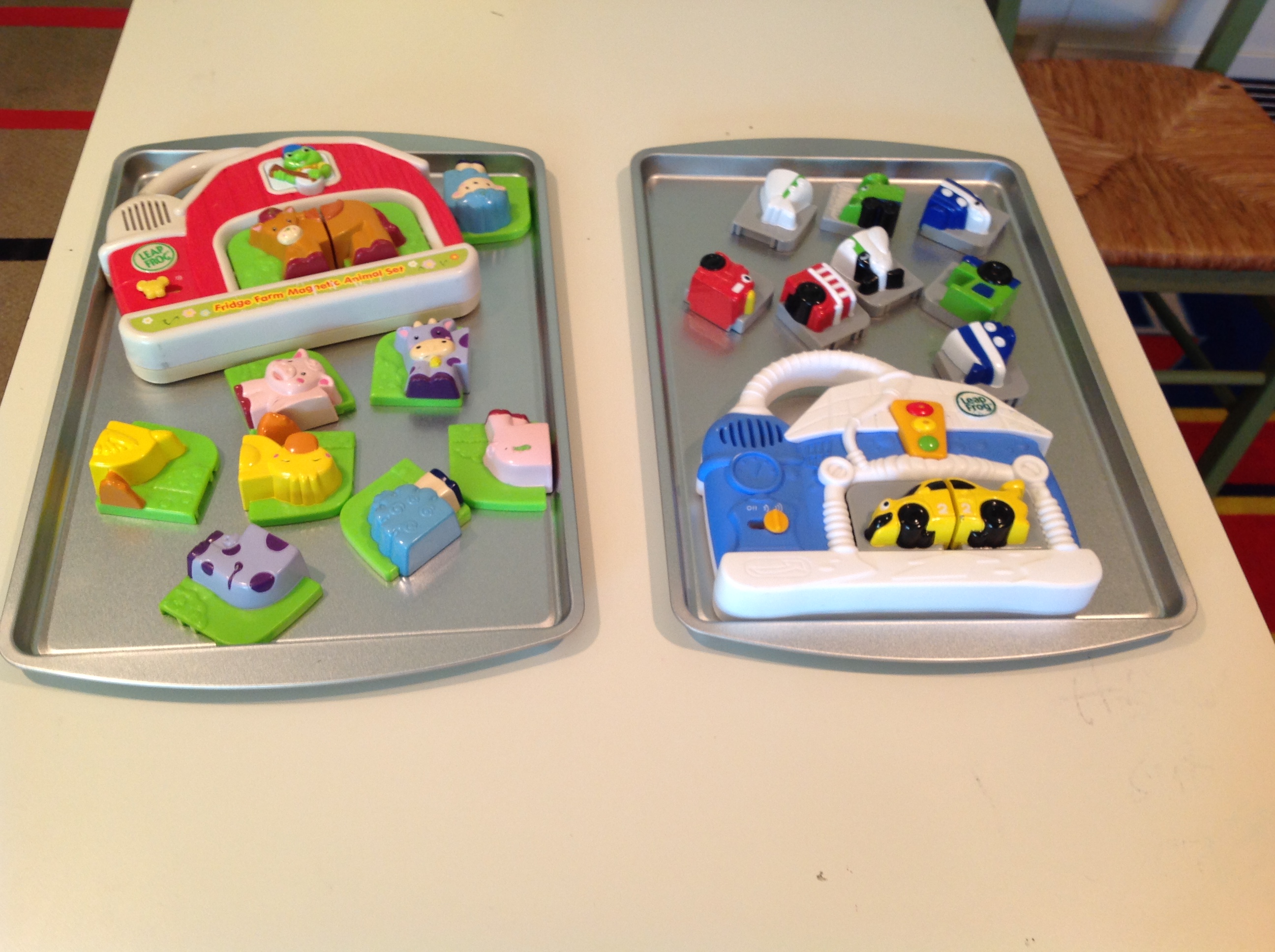 This table is very multi-functional it serves as their writing & project space and dining table. The empty space on the mat is where we sit for circle time activities.