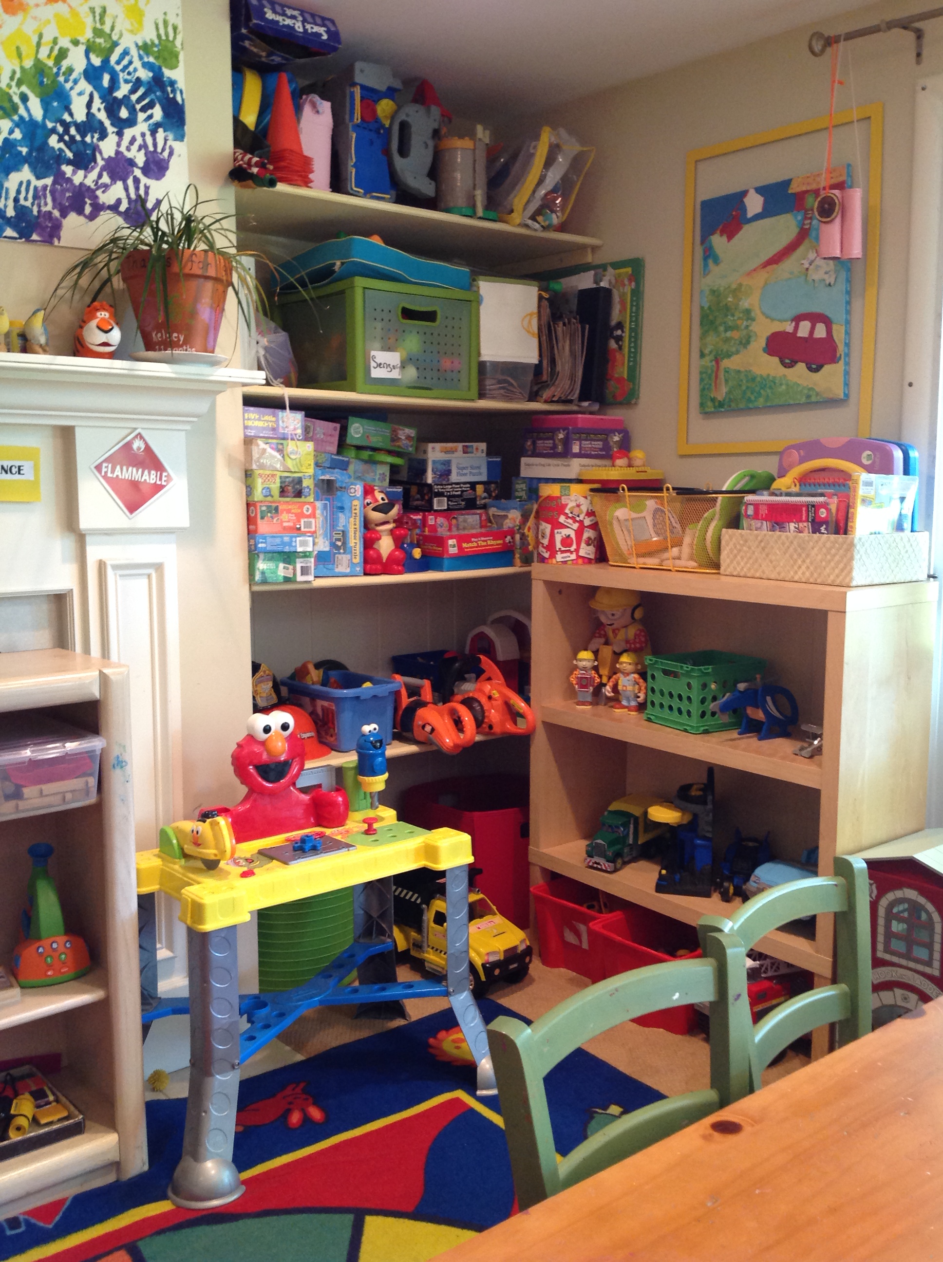This area is where we have our little circle time activities. Children also love this area because of the puzzles and blocks.