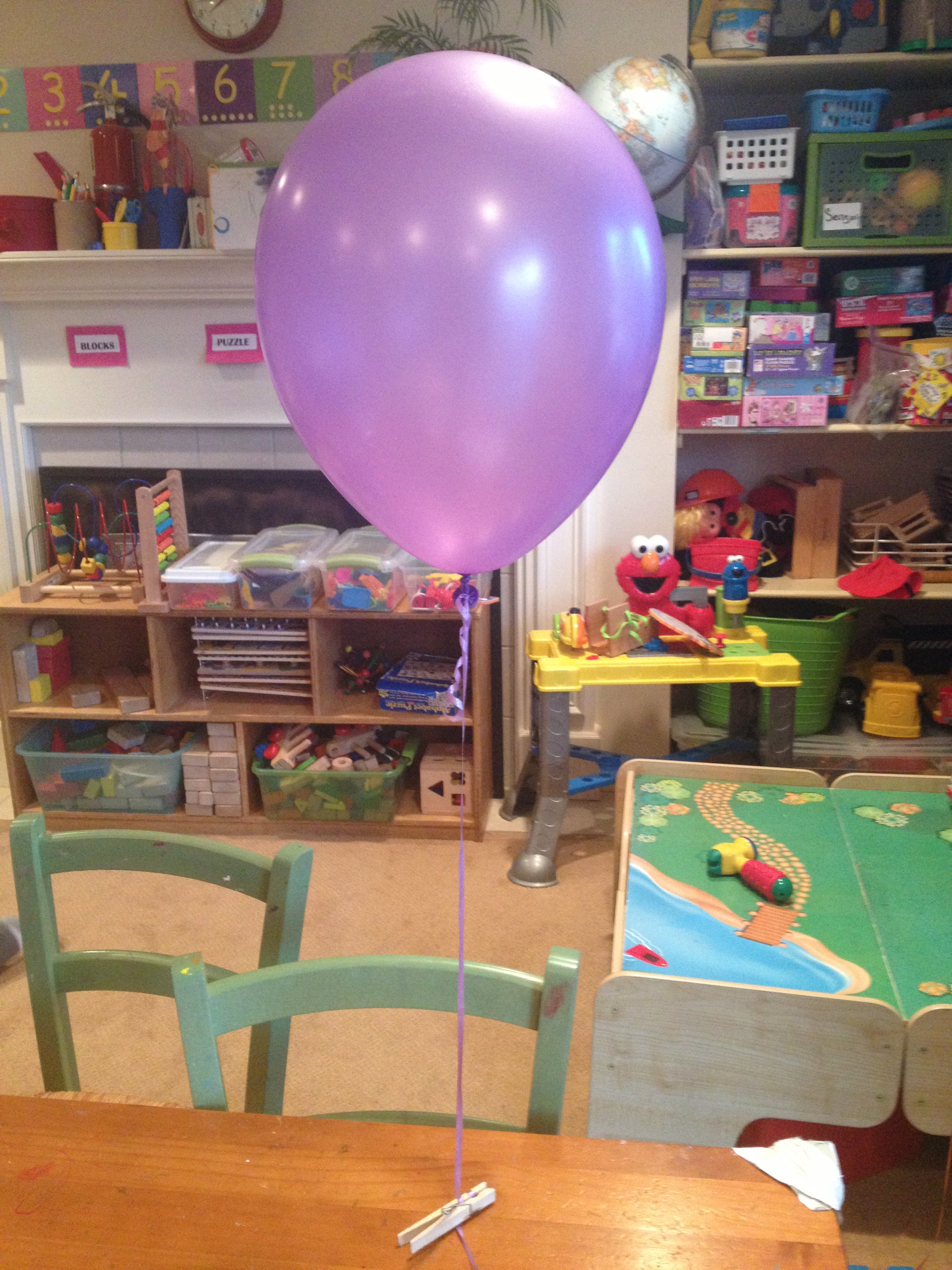 A purple balloon that was left over from a get well party I had for my own kids caused a stir in the daycare. It so happened that the lonely balloon was bouncing all over the room when one kid got it and asked, ‘why is it up there and not down on the table?’